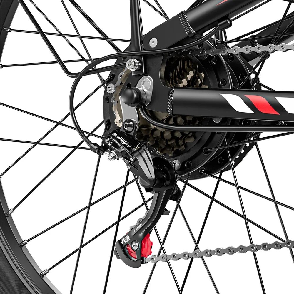 El sistema de suspensión completa de la bicicleta eléctrica RANDRIDE YG90 incluye una horquilla delantera de aleación de aluminio con bloqueo y ajuste independiente, que absorbe eficazmente los impactos sobre piedras, raíces y terrenos irregulares. La conducción resulta suave y controlada incluso en los senderos más técnicos.